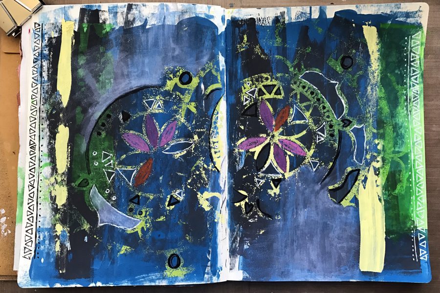 Another page in my latest altered book for the new Botanicals Class at Get Messy.
