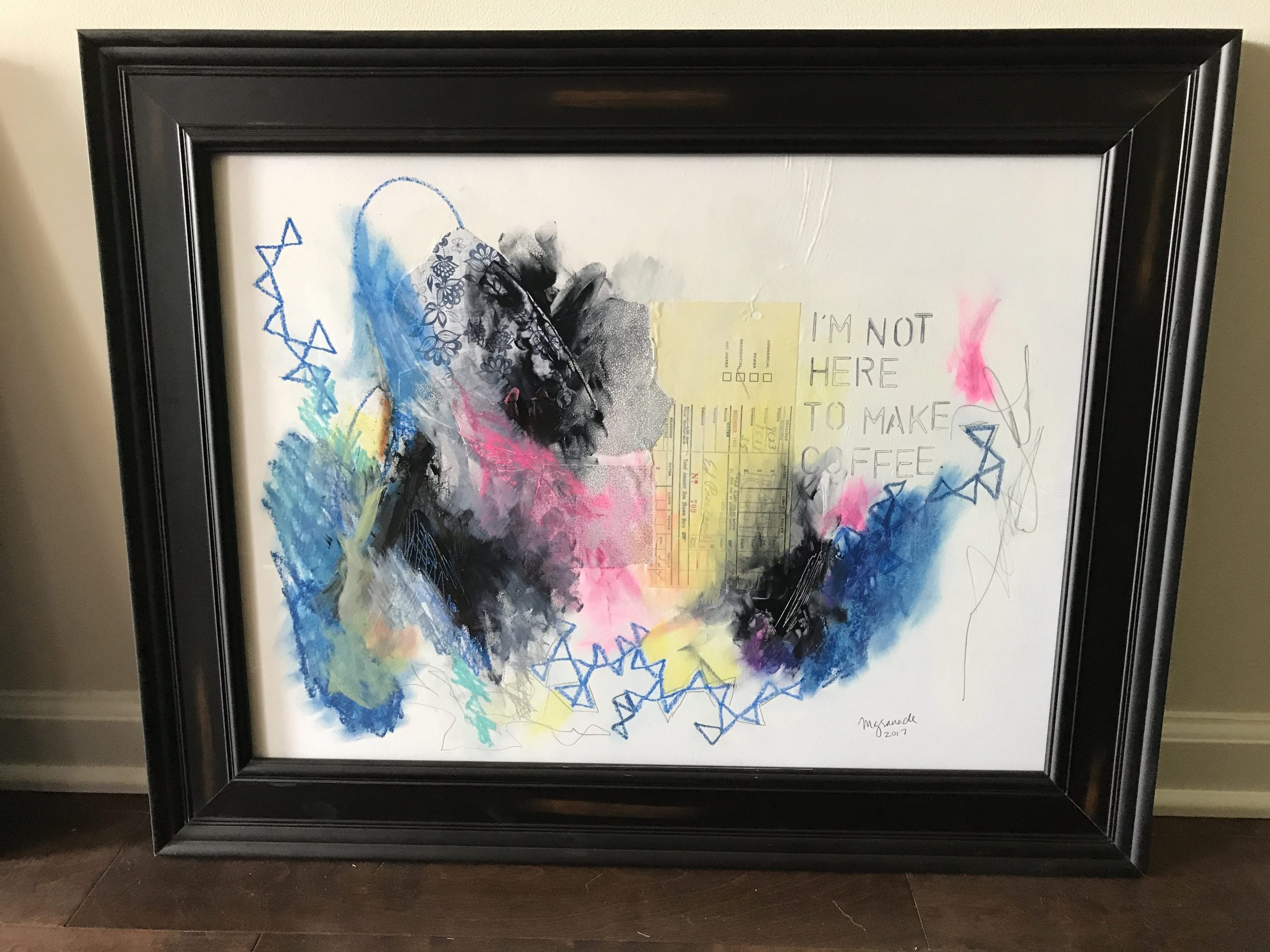 This is separate from people being interested in me being an artist. People are very interested in that. They want to know what I make and where they might see it. I always end up giving an elevator pitch on what “mixed media” means. People at parties laugh when I say I glue paper together professionally. They are impressed when I say I have a show at a smallish venue one town over and another one next year at a larger local art venue. People like the cachet of knowing an artist, particularly when I’m at one of my partner’s work functions and I’m the one artist in a veritable sea of engineers and business professionals. The working artist as an entertaining party trick.