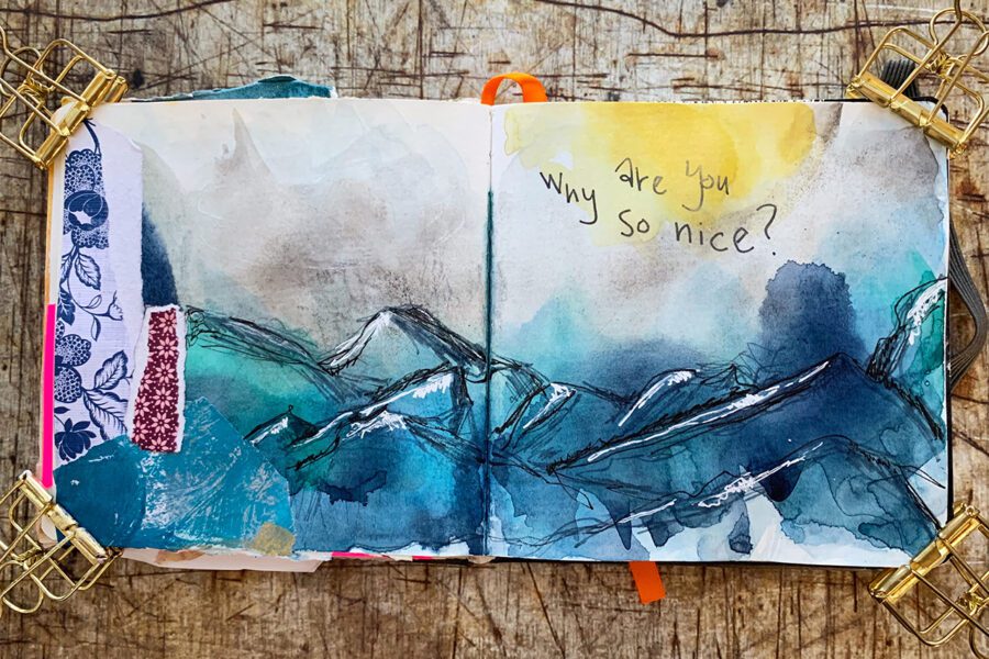 I’ve toyed with asemic writing off and on over the years but just in the past few months have really started using it regularly in my work. Asemic writing evokes a mood and allows the viewer to project onto the image what they want. I love this open field for a viewer to make their own interpretations. I am usually trying to evoke a mood but don’t want any actual words clouding what I want the images to say. As a compulsive reader, having actual words on a piece of art is sometimes distracting for me. Writing without content allows me to create a word placeholder that invites the viewers to imagine what it might say.
