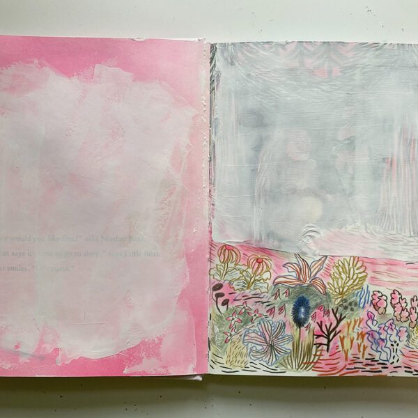 But in artwork I key in on the pink now. I tend to use it as a pop of color pretty regularly now. Pink really energizes me when I see it in art. I love to see a zig-zaggy line in hot pink because it feels a little less intimidating while still communicating a lot of energy. Neon pink feels punk rock to me. It is an extreme color and I like it with some of the distressed, cut up work I do. Magenta is deep and mysterious. Baby pink is light and fluffy. There’s just so much to be communicated with this color.