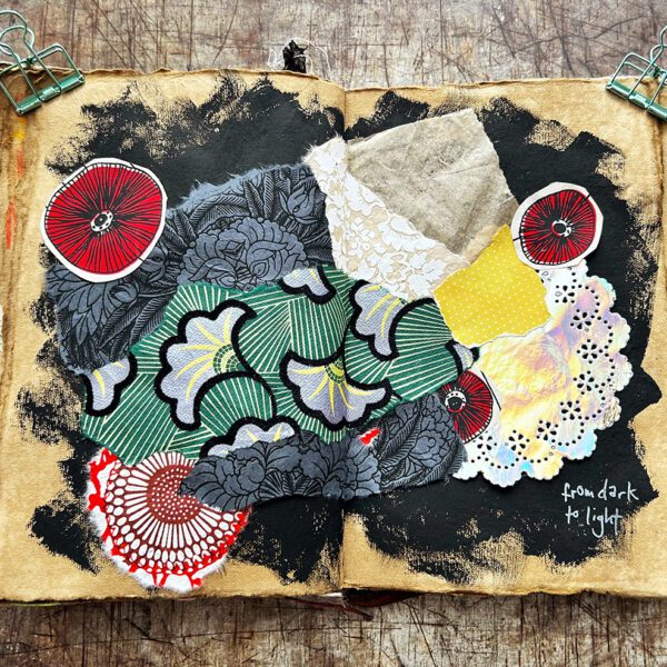 Sometimes my books have big overarching themes. This one is just a collection of things I was processing at the time and ideas I wanted to try out, notes, and color swatches. Sometimes it’s just about the colors and the feel of the paper, ya know?