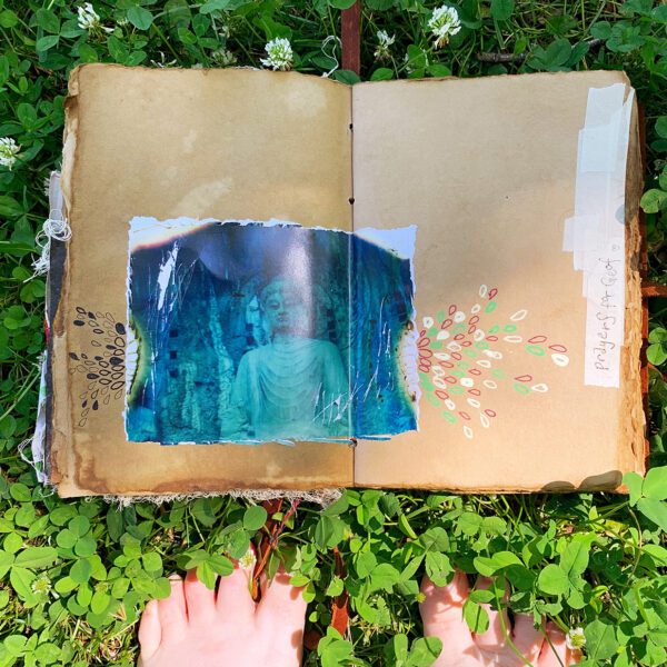 I live in Berkeley, CA with my 17-year-old son (until he flies the coop in a few more months!). I’m a nurse practitioner providing sexual and reproductive health care, including abortion, for the past 30 years. I am recently divorced and navigating life as a newly single 56-year-old. I started art journaling about seven years ago and had no clue how much it would change my life. I’m addicted to art journaling, as well as sushi, street tacos, and sheep’s-milk cheeses.
