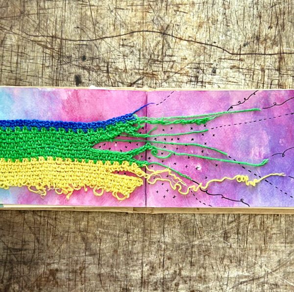 So here I’ve taken a skill that is normally a traditional handicraft but used it to make some artistic interpretations. I wanted to intentionally play in that space between craft and art using a skill that is normally delegated as women’s work and push it into the painted landscape which is so often seen as the purview of men.