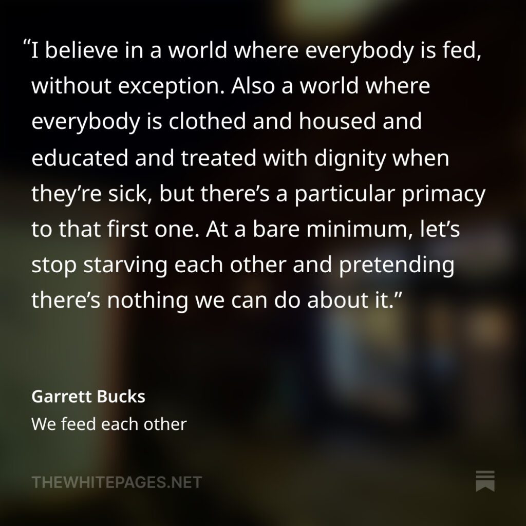 I’m on Buck’s newsletter list and he’s been talking about how his newsletter community has donated almost $30K to hunger relief charities since he posted that article a week ago. I can’t help but think about everyone I know who is making the world better in their little corner of it. So many people doing unseen kindnesses. I appreciate that so much right now.