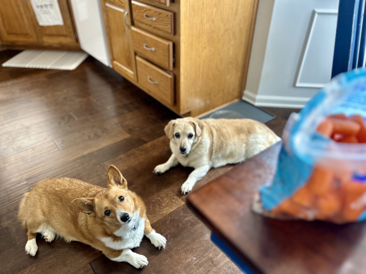 I’ve been sick this week so instead of a thoughtful or touching art update you get a picture of my dogs waiting for carrots.
