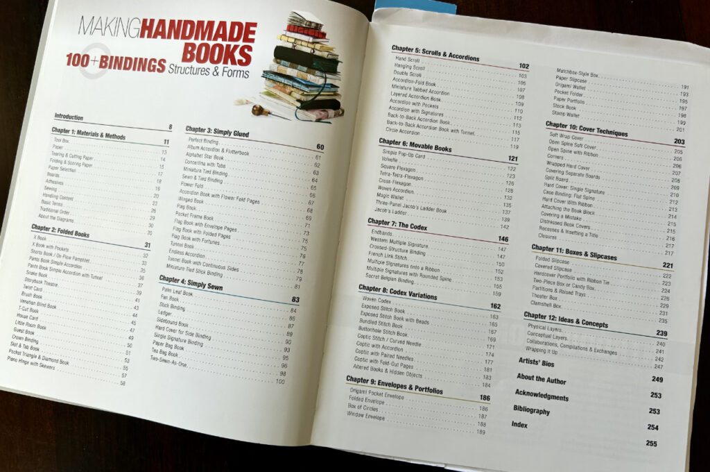 I’ve made five books (and a ton of one page zines!) this year already and I have to say, looking through the Making Handmade Books book to prep for this post makes me want to make something new. Empty books are full of possibilities and it’s the lure of those possibilities that always bring me back to it.
